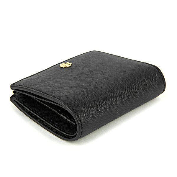 細かな型押しが施されたカーフレザーにゴールドトーンのメタルロゴがエレガントなアクセントになった二つ折り財布。